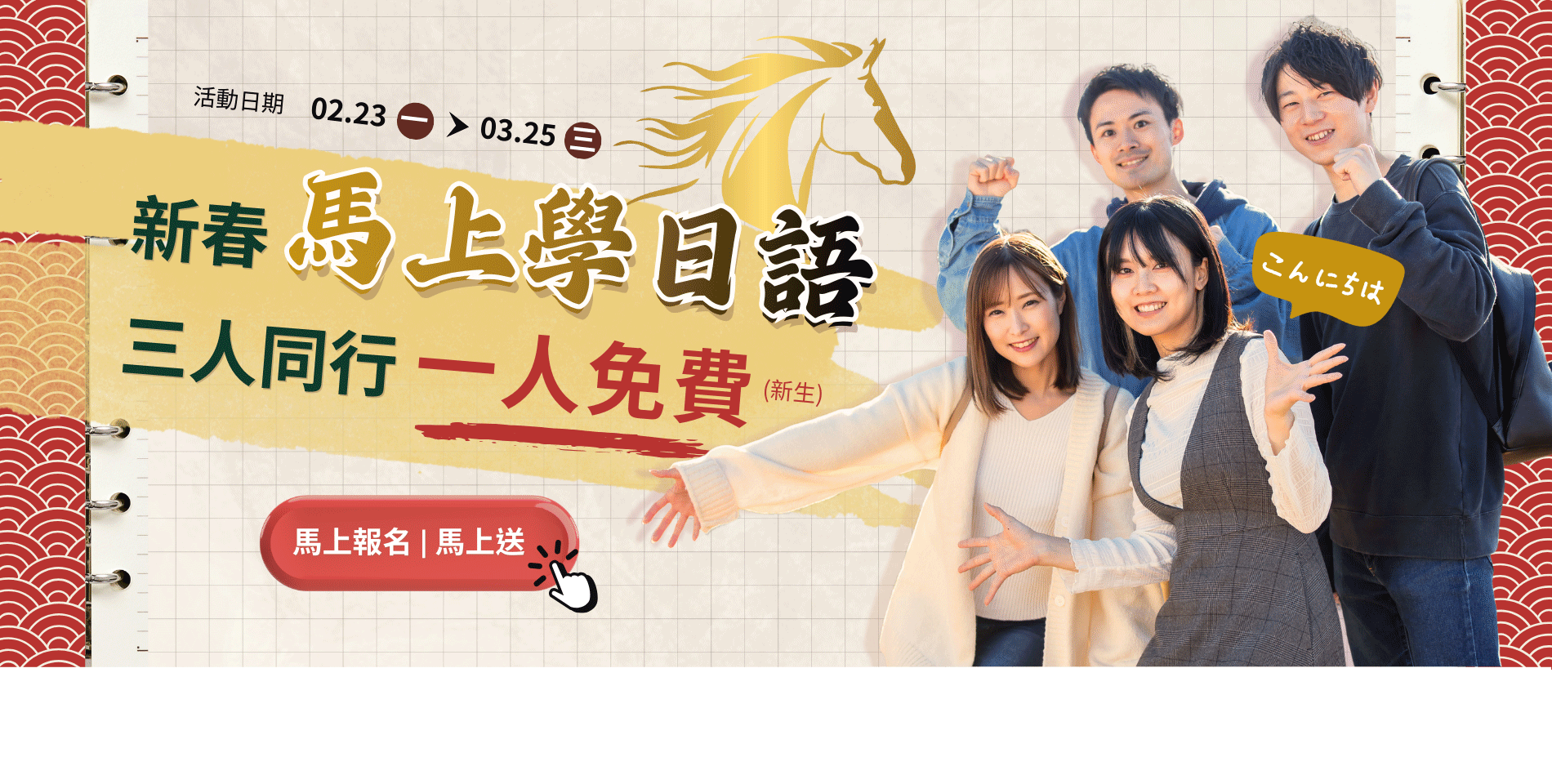 【方案二】 實體日語課程學費實繳超過10,000元(含)以上優惠2,000元!