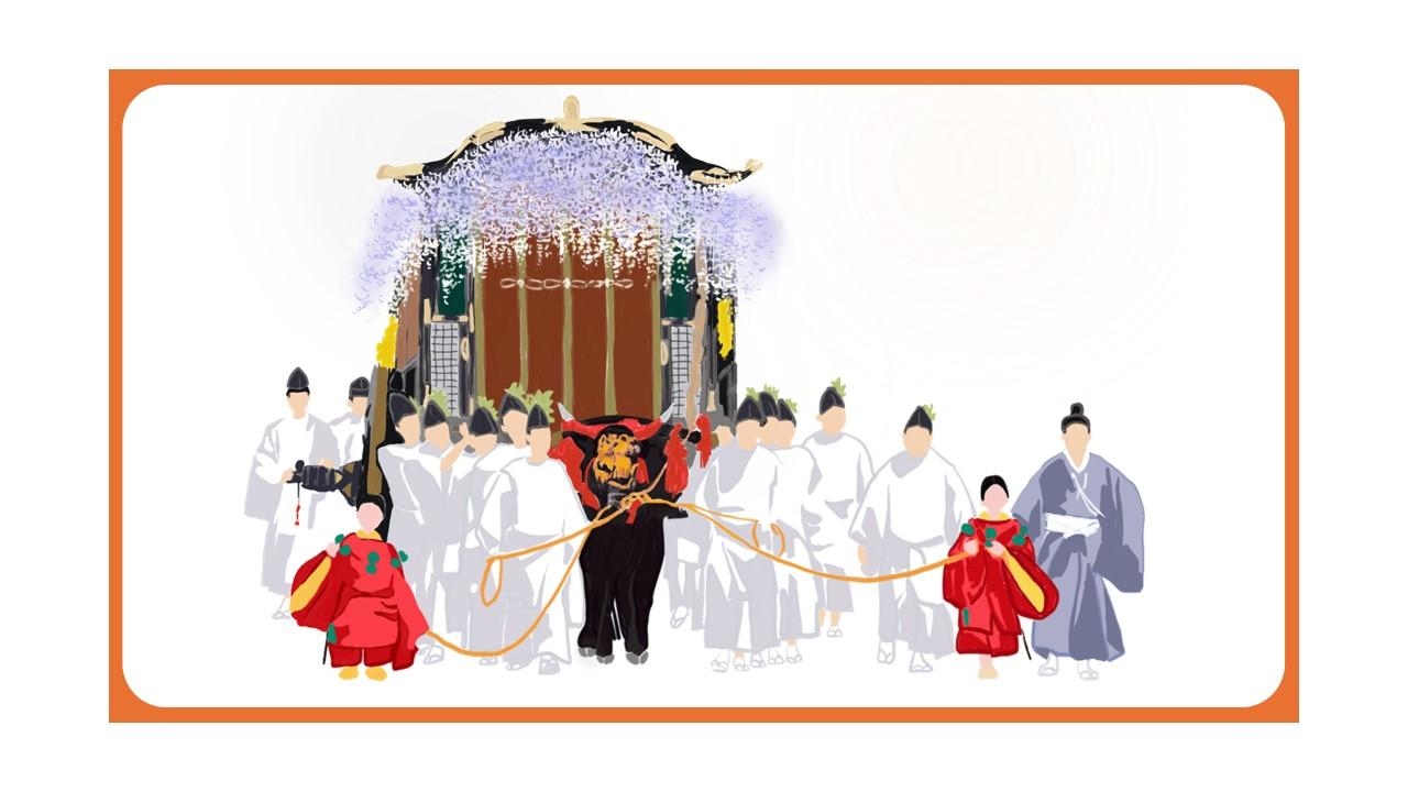 此外,葵祭每年都會從女性京都市民中選出「 齋王代 さいおうだい 來代替齋王。齋王代會穿上華麗的「十二單( 十二単 じゅうにひとえ )」和服,並坐上由8人合力扛起的「 腰輿 およよ 遊行。