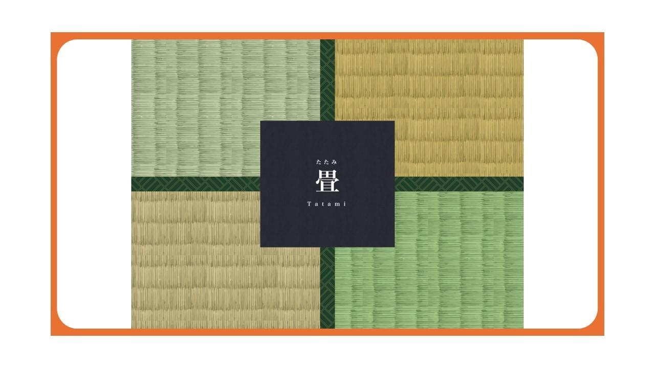 榻榻米的日文稱作「 たたみ 」,是將燈心草或藺草編織後再用布覆蓋住尾端製成的。顏色通常是綠色,隨著使用時間會漸漸變成黃色,是日式房間中常見的地板材料之一。