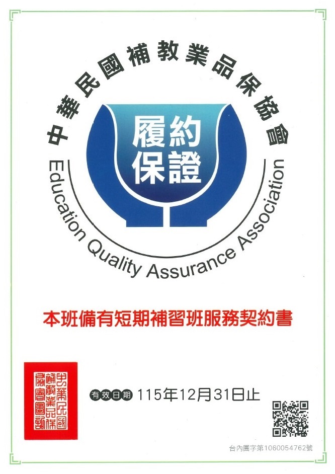 本公司有加入政府規定之協會之一「中華民國補教業品保協會」以玆證明。