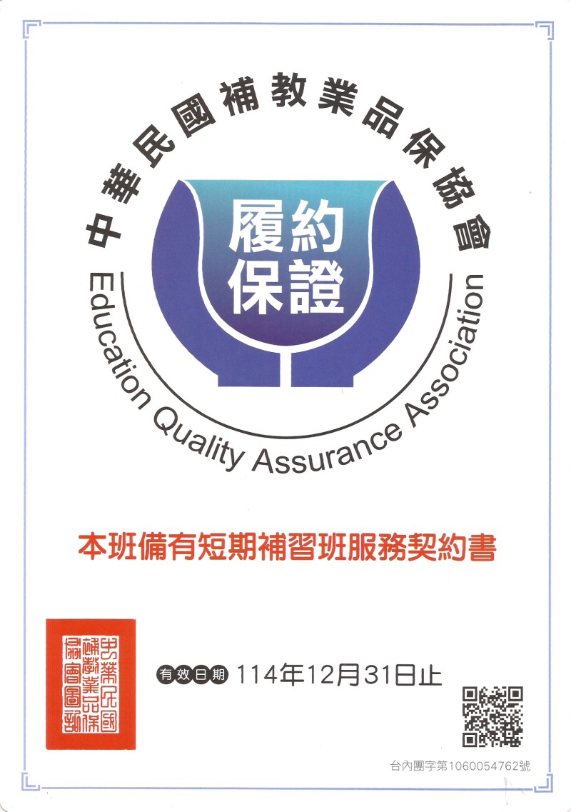 本公司有加入政府規定之協會之一「中華民國補教業品保協會」以玆證明。